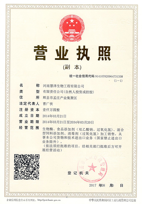 鄭州慧澤生化科技有限公司是一家充滿朝氣的科研生產(chǎn)型高技術(shù)企業(yè)。目前公司業(yè)務(wù)主要集中在精細(xì)化工、食品化工和微生物制劑行業(yè)。公司現(xiàn)已建成鄭州、焦作、新鄉(xiāng)三個(gè)生產(chǎn)基地,其中河南新鄉(xiāng)輝縣孟莊生產(chǎn)基地占地70畝,總投資達(dá)1.2億。現(xiàn)擁有年產(chǎn)100000噸過氧化氫消毒劑,年產(chǎn)8000噸的過氧化鈣和年產(chǎn)5000噸的雙乙酸鈉的生產(chǎn)線,同時(shí)開設(shè)有生產(chǎn)總量5000噸的枯草芽孢桿菌、地衣芽孢桿菌等微生態(tài)制劑發(fā)酵生產(chǎn)車間。公司始終堅(jiān)持“以人為本,科技興企,品質(zhì)優(yōu)良,用戶滿意”的經(jīng)營(yíng)宗旨。為客戶創(chuàng)造價(jià)值更多的價(jià)值...